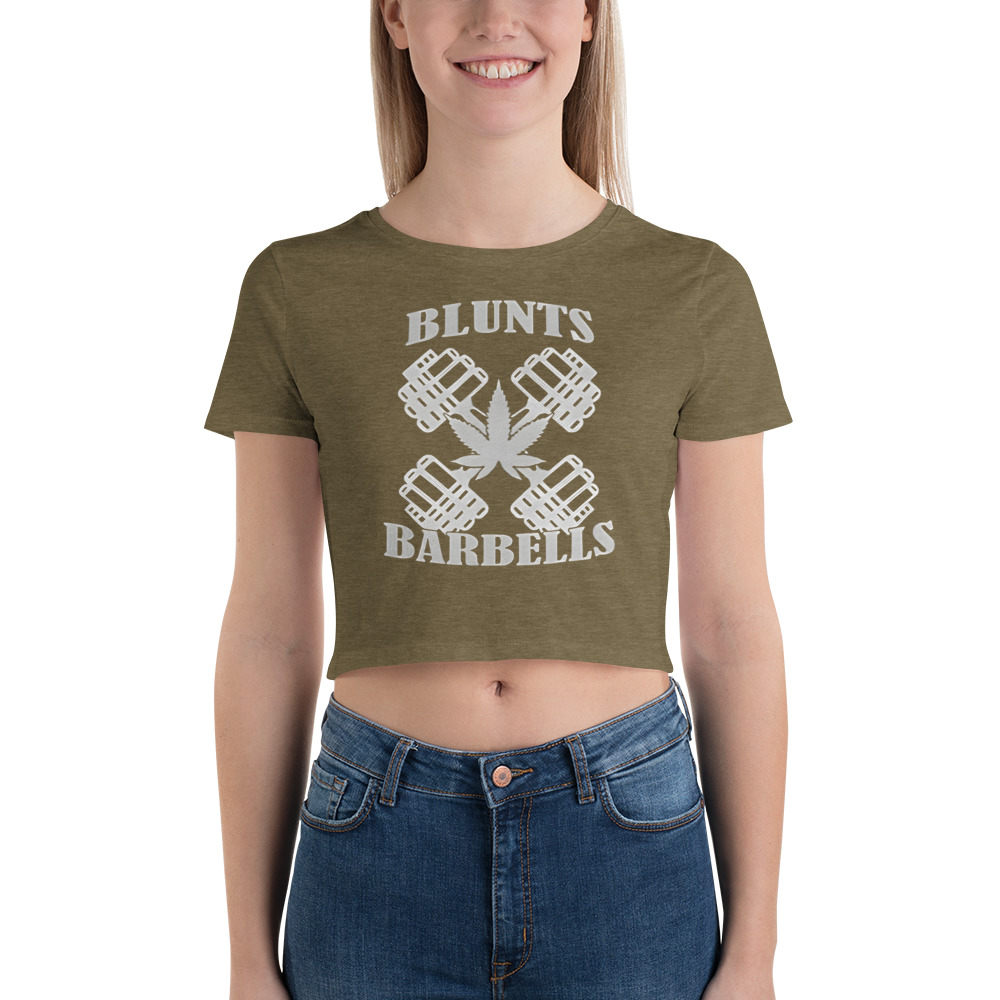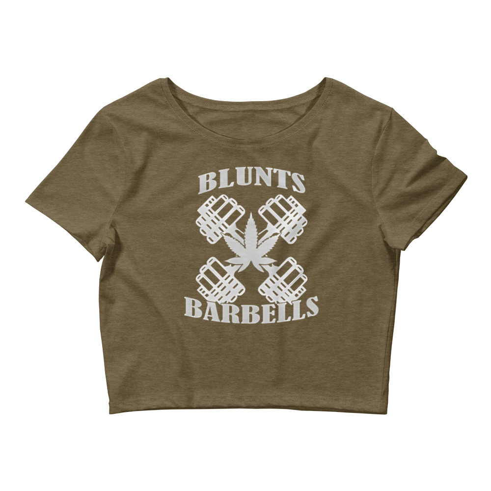 The Blunts & Barbells Crop Top is here! This top is tight-fitting but still incredibly comfortable, and it hits just above the navel.